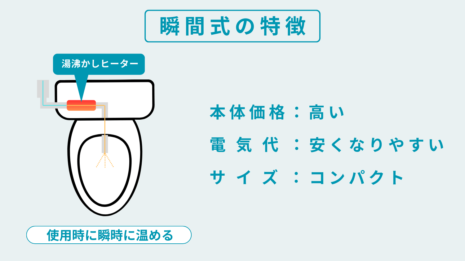 温水洗浄便座には大きく分けて「貯湯式」と「瞬間式」があります。それぞれの特徴を理解することで、生活スタイルに合った選択が可能になります。