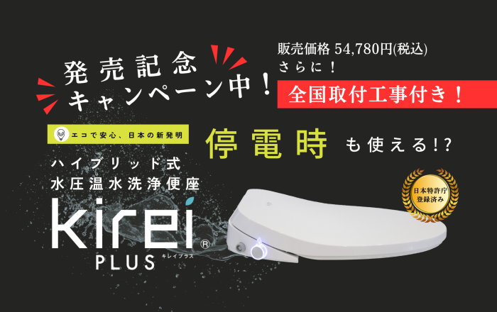 当社で総代理店をしております『Kireiシリーズ』の新商品『ハイブリッド式温水水圧式洗浄便座 Kirei PLUS』の発売記念キャンペーンを実施いたします!!