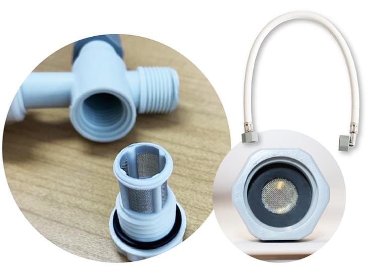 水圧式かつ給水ホースと分岐継手にフィルタを搭載したことで石灰づまりによるモーターの故障を防ぎます。