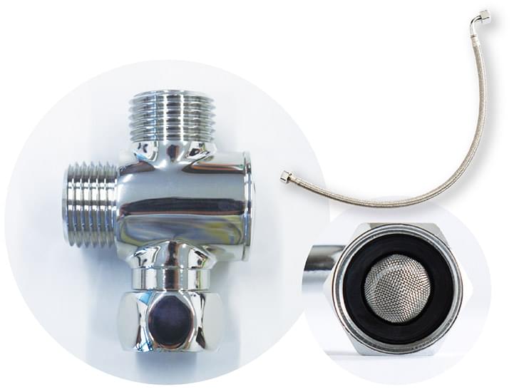 分岐水栓やネジが樹脂製で少し長くて壁に干渉しましたのと、耐久性が不安ですが、取付はおもいのほか楽で、使用感も快適です。