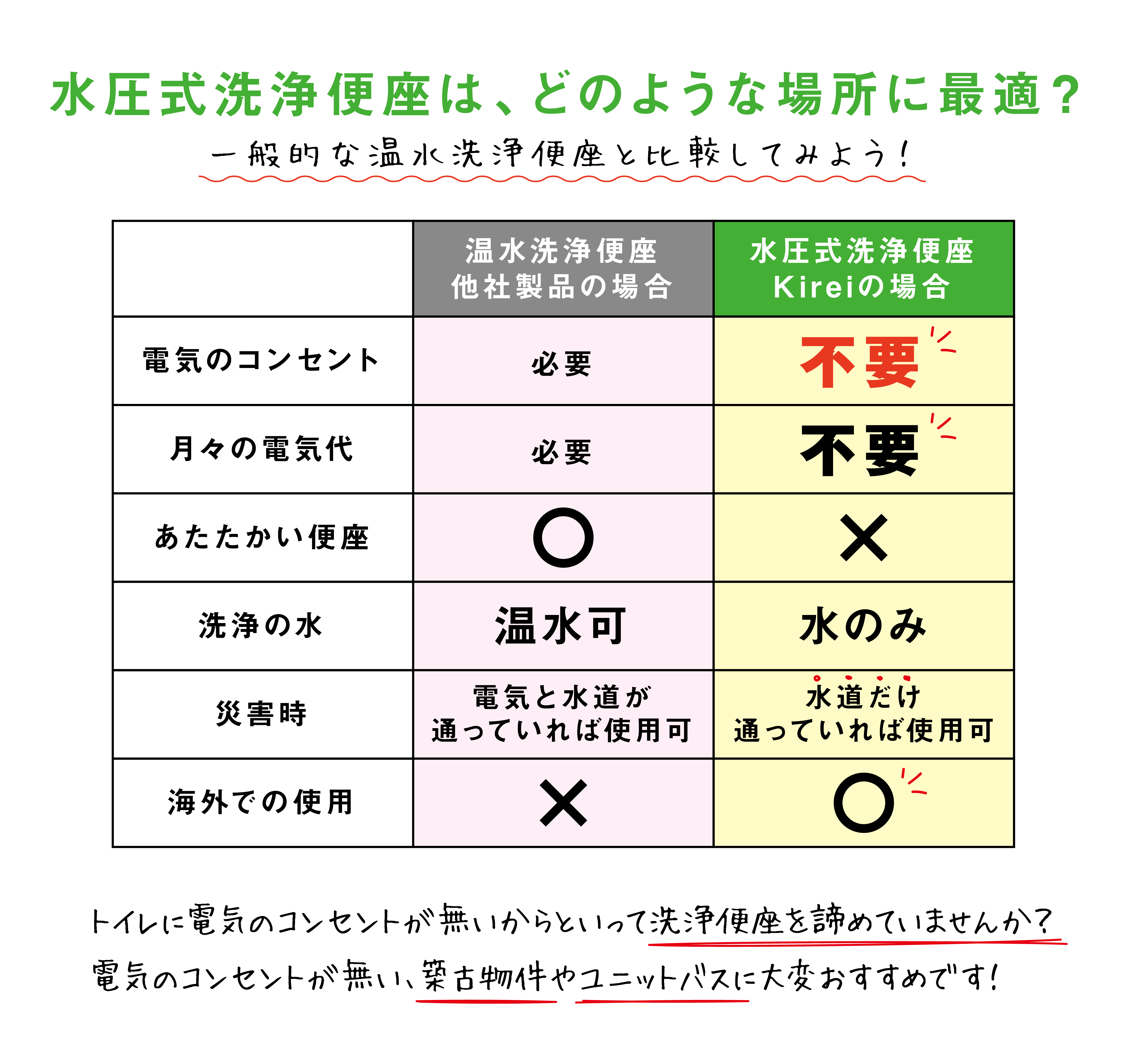 電源なしで使える!水圧式洗浄便座Kirei
