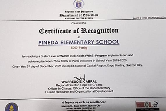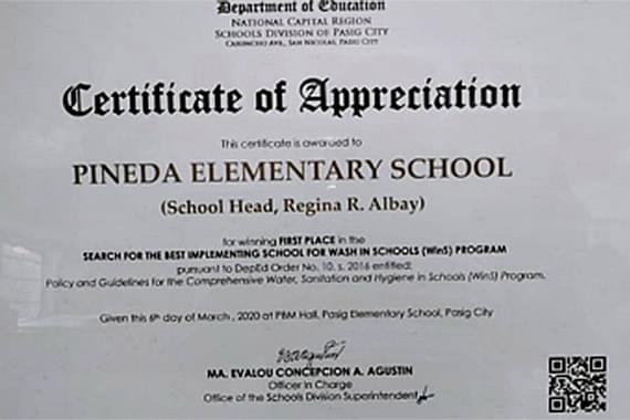 Kireiを導入した小学校は、フィリピン教育庁より生徒の衛生環境改善を最も推進し、衛生教育を行った模範校として表彰されました。